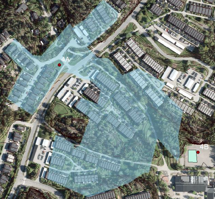 Under grusytan, som idag används som idrottsplats, går en dagvattenledning som kan göras om till ett magasin för dagvatten. Magasinet ger även en fördröjningsvolym och skyddar därför mot översvämningar vid kraftiga regn. Grusytan kan fortsättningsvis användas som idrottsplats. Eventuellt kan infiltration från magasinet ske till omkringliggande mark men ytterligare utredning kring infiltrationskapacitet behöver genomföras.