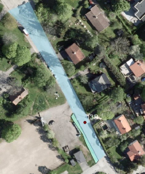 En gräsyta bredvid Segeltorpsvägen kan nyttjas för placering av en växtbädd. Gångbanan behöver byggas om för att tillåta att vägdagvatten når gräsytan. Alternativt kan gångbanan utvidgas på motsatt sida om vägen och tas bort på den aktuella platsen. Vägen behöver skevas om för att en naturlig avrinning till gräsytan ska ske.