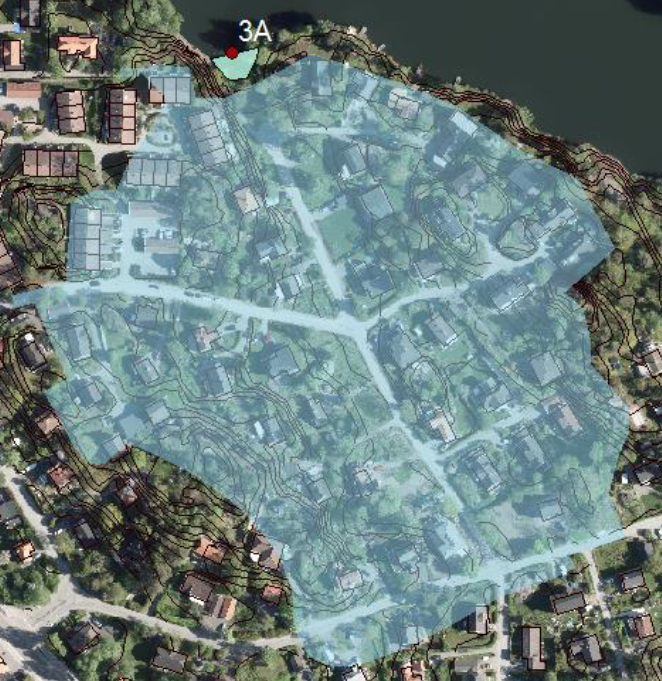 Området vars dagvatten kan ledas till utloppet utanför Frösövägen har begränsad möjlighet för uppströms liggande lösningar då det består av smala lokalgator och tomtmark. För att åstadkomma rening av dagvatten från detta område föreslås en skärmbassäng i viken runt inloppet i Långsjön. Skärmbassängen kan anläggas i vattnet med skärmarna fästa vid pontonbryggor, och en volym kan på så sätt bildas för avsättning av föroreningar. Anläggningen kan även bidra med ökat rekreationsvärde om en gångbar brygga läggs över skärmen.